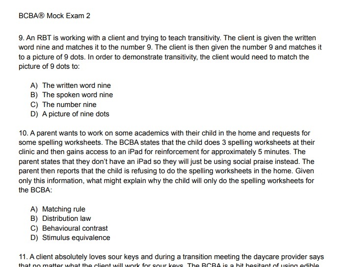 This mock exam, this file and its content is in no way, shape or form affiliated with, nor endorsed by the Behavior Analyst Certification Board (BACB®) in any way.