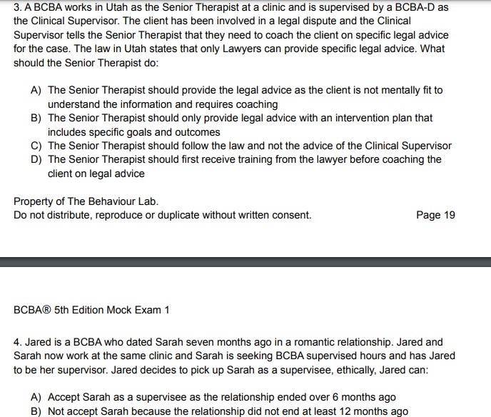 BCBA mock exam 1 | 175 questions + 10 bonus questions| answer key included | bcba practice exam| bcba test| 6th Edition Task List