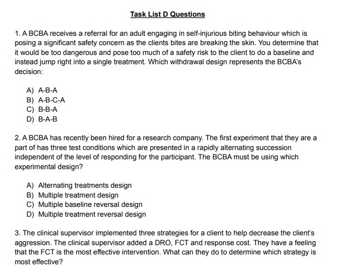 This mock exam, this file and its content is in no way, shape or form affiliated with, nor endorsed by the Behavior Analyst Certification Board (BACB®) in any way.